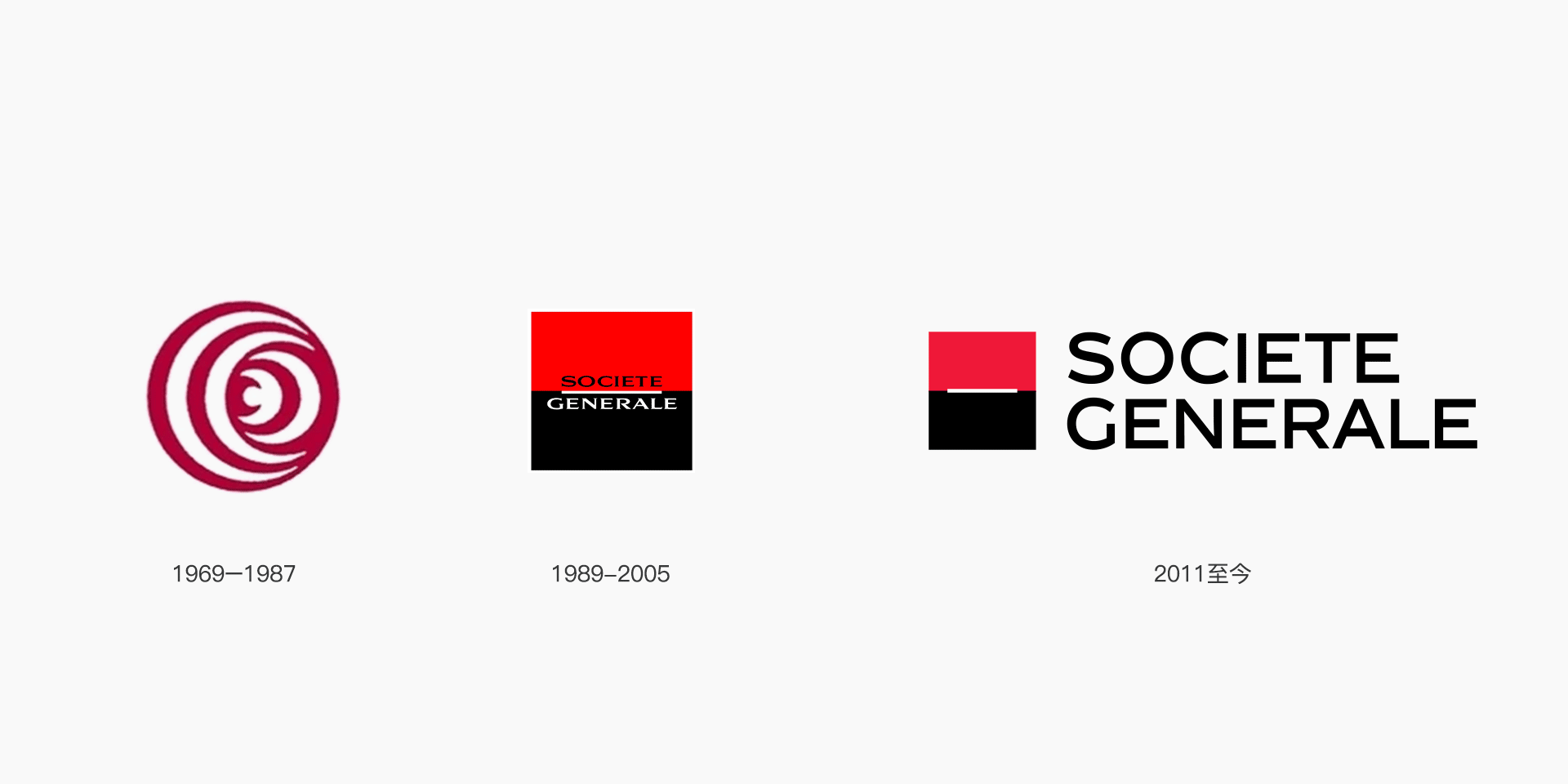 法國(guó)興業(yè)銀行創(chuàng)立于1864年,至今已有159年歷史。其紅色和黑色的方塊標(biāo)首次亮相是1989年。1987年,興業(yè)銀行私有化后決定重新設(shè)計(jì)視覺(jué)形象,以此來(lái)提升品牌的傳播和知名度。