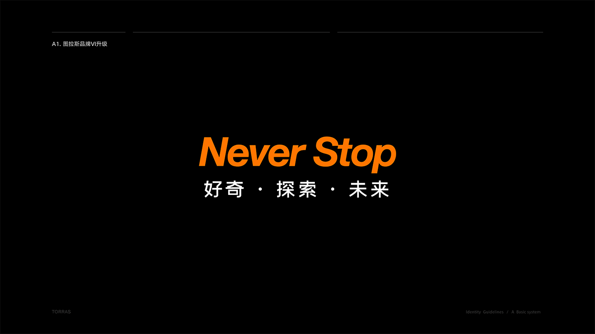 近日,圖拉斯對自己的品牌VI進(jìn)行全面升級,LOGO、中英文字體以及品牌色彩都有明顯提升。圖拉斯將創(chuàng)立以來一直堅(jiān)持的“好奇、探索、未來”的品牌理念進(jìn)行了更全面、更深入的解讀。延伸出「Never Stop」的品牌精神,并融入在本次品牌VI煥新升級中。